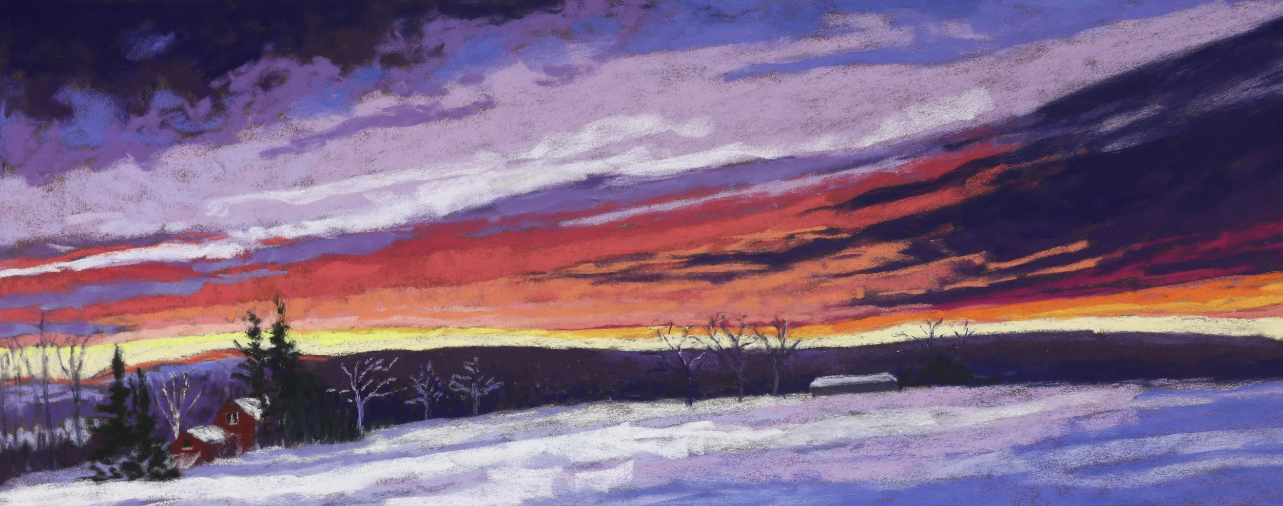For this commission, the client sent me several photos with these instructions, and trusted me to make something from several sources. This heartfelt gesture was a 30th wedding anniversary gift for his wife. This piece was a wonderful challenge, as he wanted a totally different sky than any of the photos of the actual place. And he wanted snow. How many snow pieces have you seen me make? I love the outcome though, and his wife was over the moon!